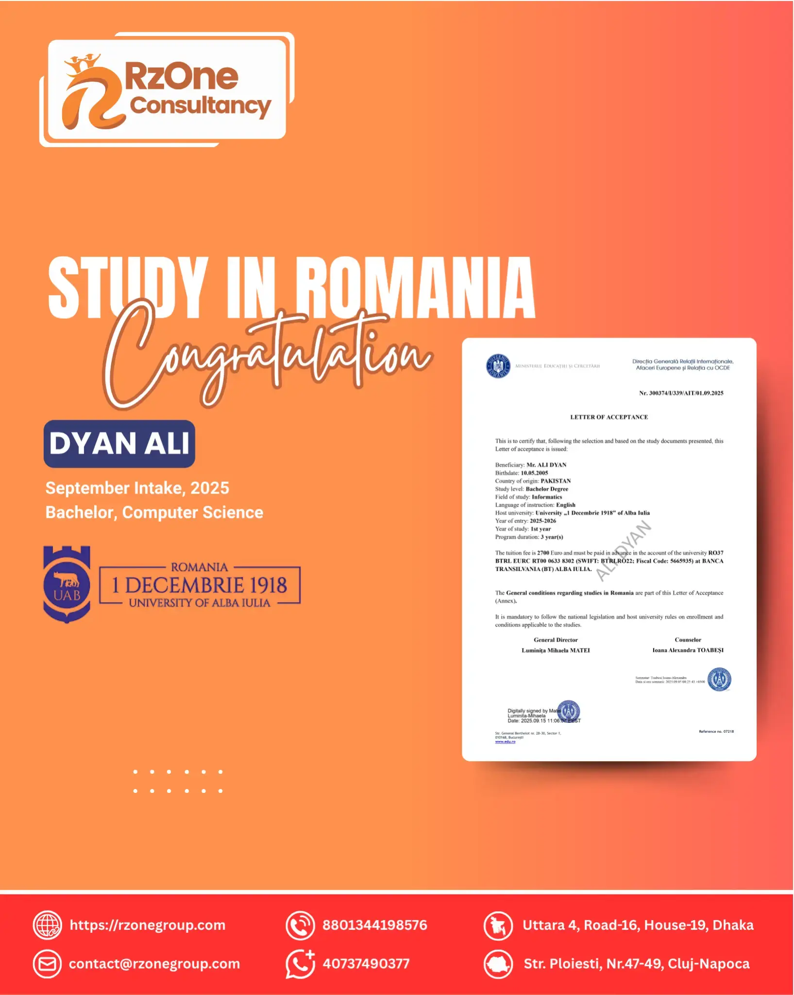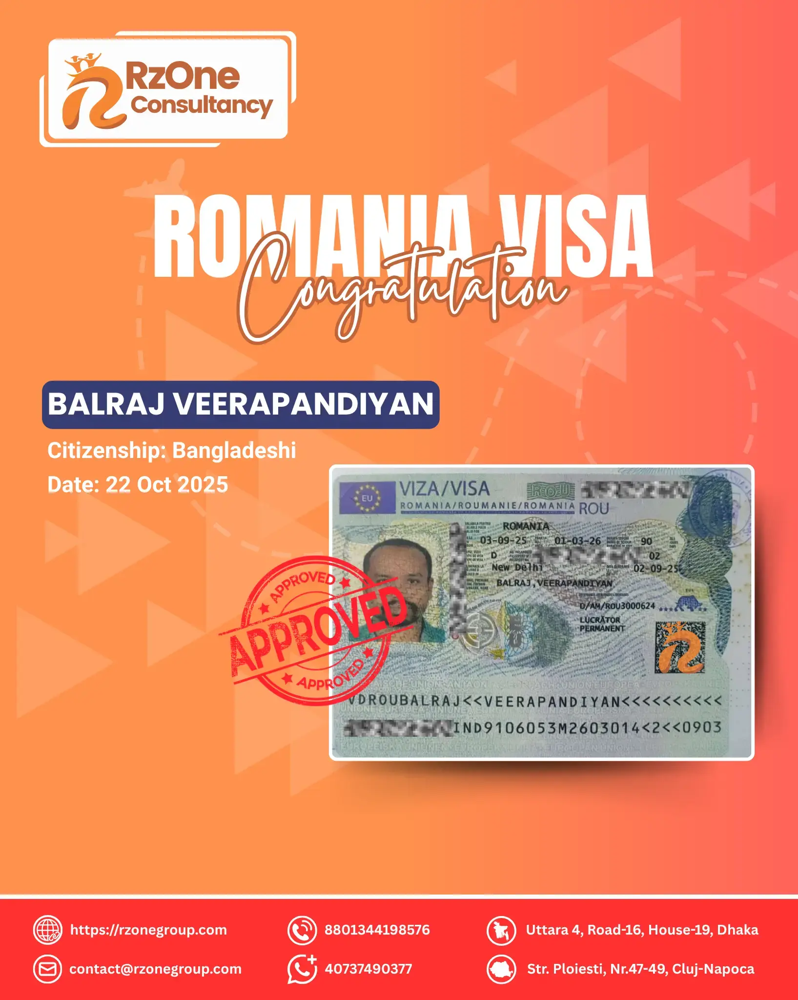 Explore RzOne Consultancy’s Romania Success Gallery — real student success stories, visa approvals, and achievements in Romanian universities.
